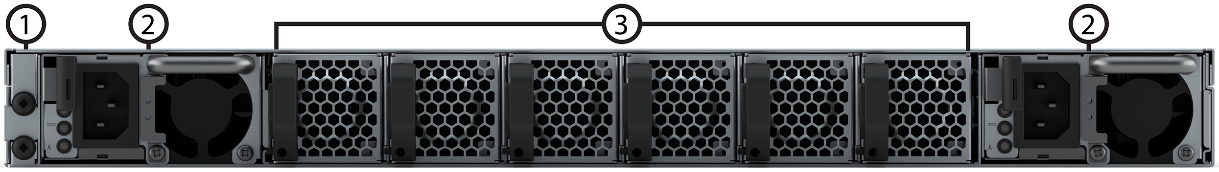 | 1. | SFP28 ports 1/10/25 Gb/s | 2. | QSFP28 ports 40/100 Gb/s | 3. | OOB management port 10/100/1000 Mb/s |