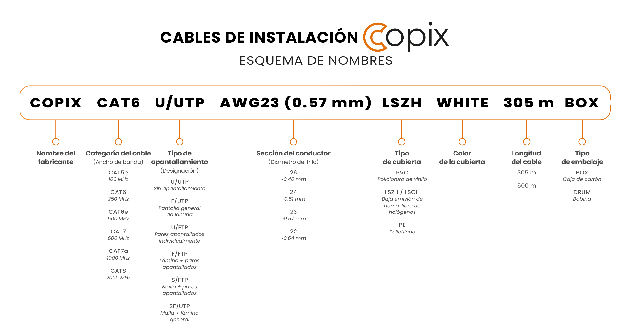 Cable Copix CAT6A F/FTP AWG23 (0.57 mm) FRLSZH BLANCO (Indoor) 500 m BOBINA