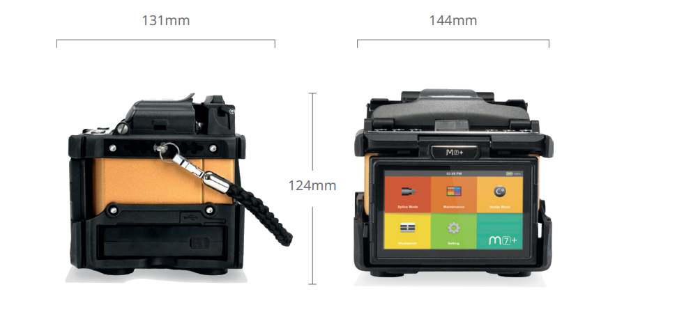 Spawarka światłowodowa INNO M7+ - poręczna spawarka światłowodowa z opcją centrowania do płaszcza. Posiada 4.3-calowy kolorowy wyświetlacz LCD o wysokiej rozdzielczości z intuicyjnym interfejsem GUI (Graphic User Interface), który zapewnia duży i wyraźny obraz włókna. Poprzez dwukrotne dotknięcie ekranu, użytkownik może powiększyć i pomniejszyć obraz 320-krotnie. Co więcej, spawarka została wyposażona w regulowany pasek, który w dużym stopniu ułatwia pracę z urządzeniem.