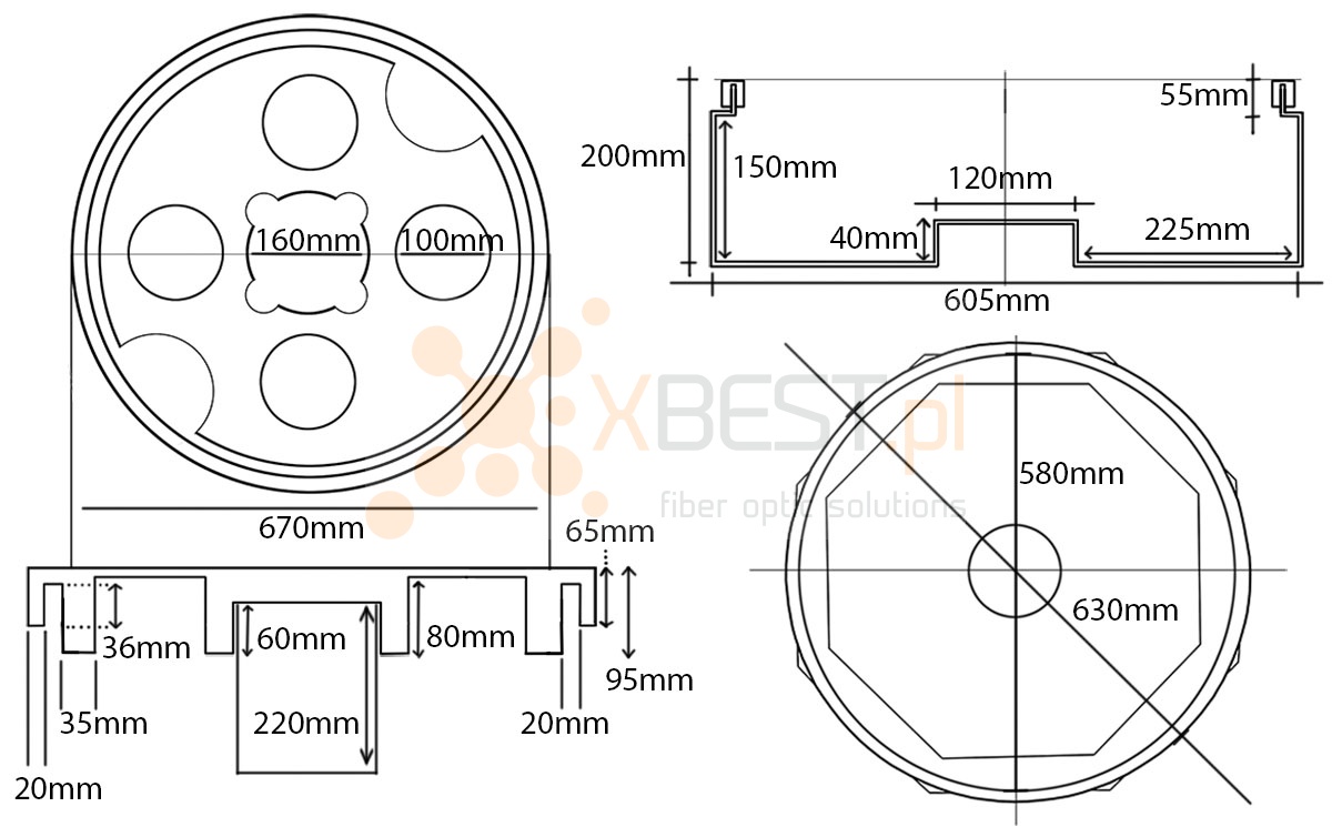 Zasobniki umożliwiają bezpieczne przechowywanie zapasów kabli światłowodowych, wykonywanie rozgałęzień oraz prowadzenie kabli nawet w miejscach o niewielkim promieniu gięcia. Osiem płaskich powierzchni bocznych korpusu pozwala na wygodne wprowadzanie rur o standardowych średnicach Ø32 mm oraz Ø40 mm. Instalacja może być realizowana przy użyciu uszczelek gumowych, dogrzewanych półzłączek, dogrzewanych króćców lub półzłączek z gwintem i nakrętką. Część elementów montażowych, takich jak uszczelki gumowe czy półzłączki z gwintem, może być instalowana bezpośrednio na placu budowy.